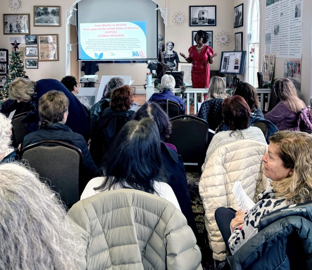 Journey through the stories of America’s First Ladies in this engaging lecture led by a presenter portraying Michelle Obama. Blending vivid visuals, historical quotes, and personal reflections, the program highlights twelve trailblazing women who shaped the nation—from Martha Washington to Eleanor Roosevelt and beyond. A Q&A invites lively discussion.